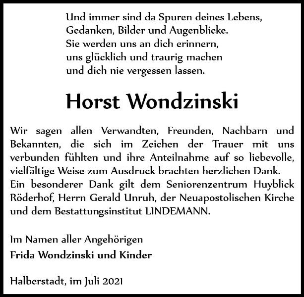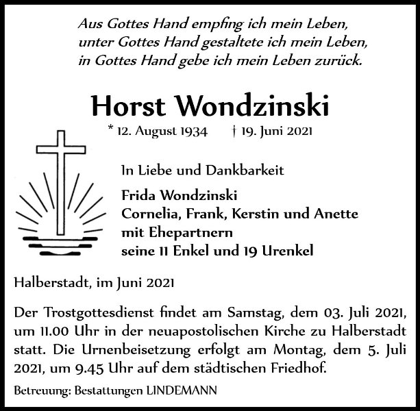 gestorben am 19. Juni 2021 in Huy OT Röderhof