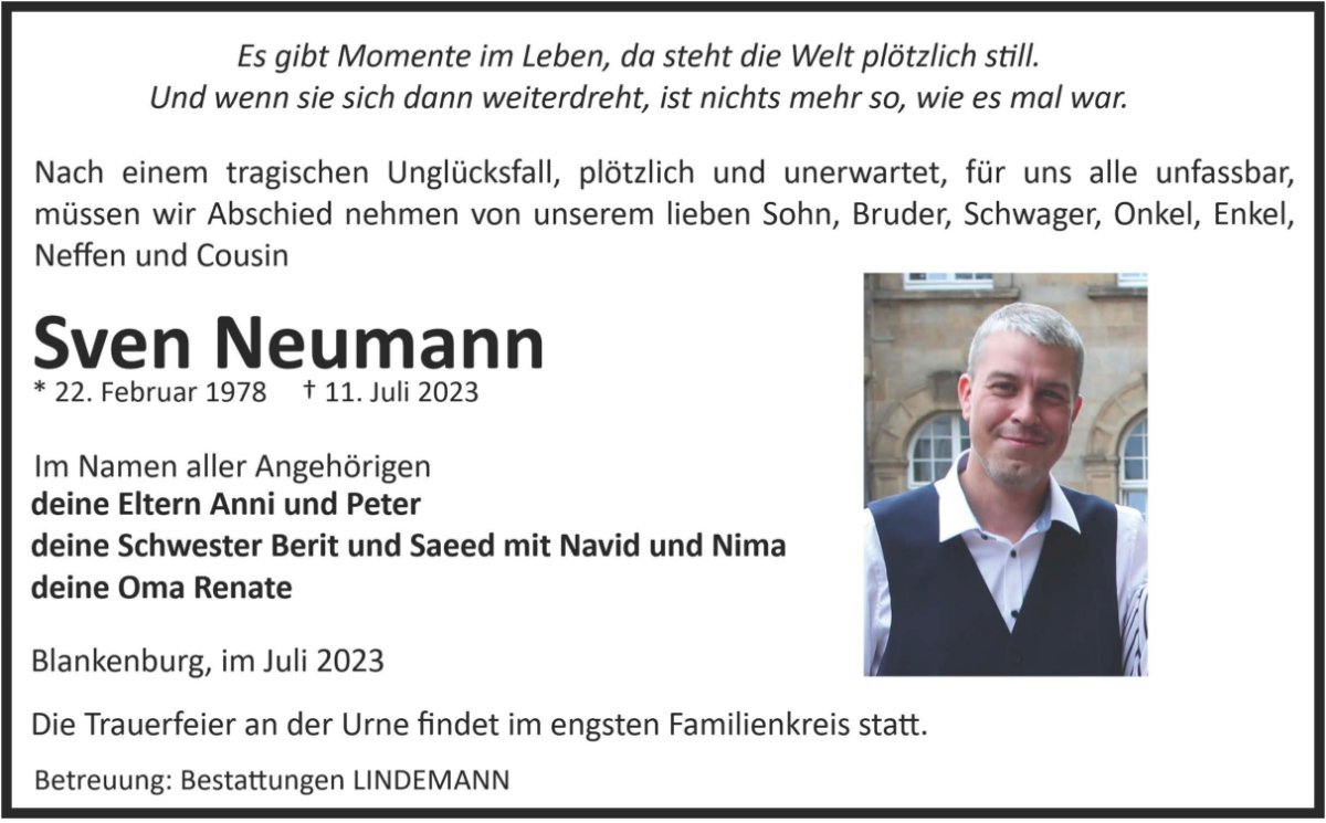 Sven Neumanngestorben am 11. Juli 2023